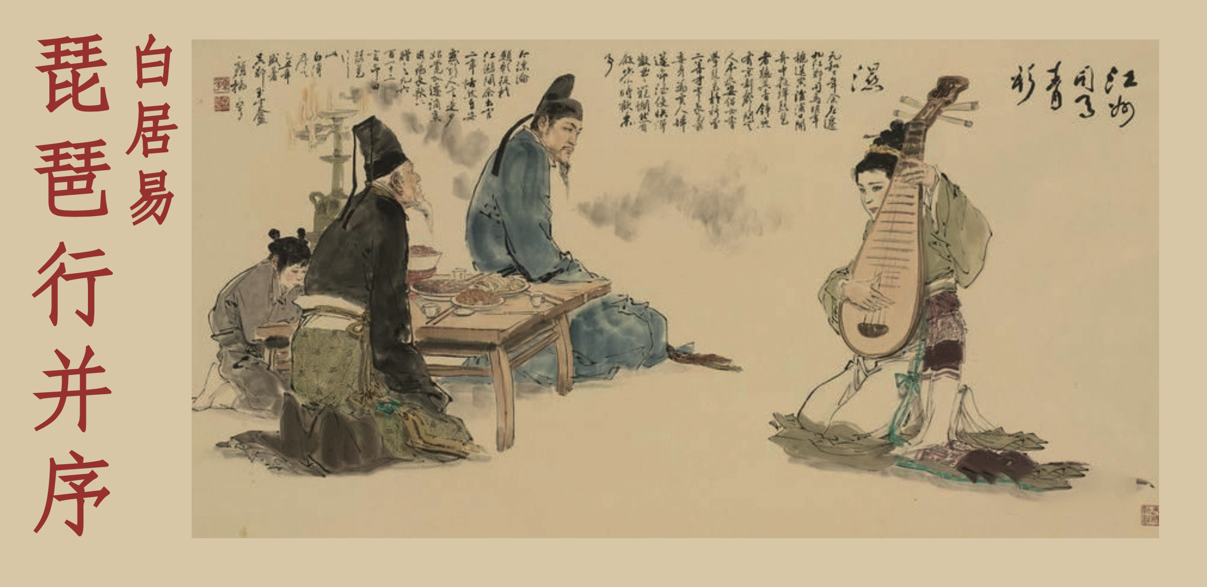 Esta Canção do Alaúde é um dos mais famosos poemas de toda a vastíssima poesia chinesa. Escrito por 白居易 Bai Juyi (772-846), quando seu exílio em Jiujiang, no ano de 816, permanece como uma das obras-primas saída da pena, do entendimento, da sensibilidade e do engenho do grande poeta. Eis uma possível tradução do poema, de que deixamos também o original.