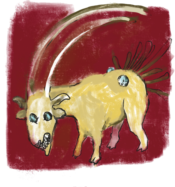 Contudo, o boyi era ainda composto de nove caudas e quatro orelhas. Como se não bastasse tanta bizarria, para aumentar a estranheza do seu aspecto, no farto lombo haviam-lhe nascido dois olhos.