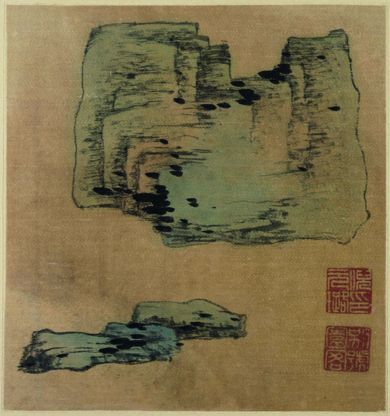 Nessas dez folhas, intituladas Amizade na Pedra (Shijiao tu), representou sucessivamente dez rochas diversas como personalidades, em que se reconhecem as quatro qualidades das pedras analisadas por Mi Fu: