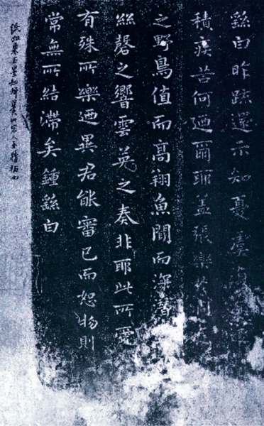 Xue Ji 薛稷 (649-713) foi um oficial que serviu a dada altura o imperador Ruizong e depois se tornou 左散騎常侍zuo sanqi changshi, um consultor dos exames imperiais. Dedicou-se ao estudo de muitas obras caligráficas de Yu Shinan e Chu Suiliang, mas criou o seu próprio estilo. Também foi um pintor e poeta de talento, ou seja, era excelente nas Três Perfeições (caligrafia, pintura e poesia). A estela 信行禪師碑Xinxing Chanshi bei, O mestre Chan [Zen] Xinxing, um oficial da dinastia budista Sui, é considerada a sua obra principal. A estela, com aproximadamente 1800 caracteres, não sobreviveu ao tempo, mas existem fragmentos de decalques a tinta. Os caracteres são de grande elegância, com traços finos, e incorporam elementos das caligrafias corrente e cursiva na caligrafia regular.