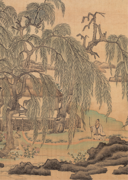 Qianlou1 disse: “Não fiques triste por seres pobre e humilde, nem fiques ansioso por buscar riquezas e honra.” Ruminando as suas palavras, alguém se perguntará se ele se estará a referir ao Mestre Cinco Salgueiros e seus semelhantes. O Mestre Cinco Salgueiros bebe vinho e compõe poemas para dar plena expressão aos seus elevados ideais. Não será ele um homem comum dos tempos antigos de Wuhuai Shi ou Getian Shi2?