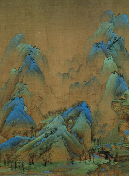 Wang Ximing percebe que as pessoas sem nome são apenas figuras decorativas nas montanhas e nas águas, assim como os pássaros que voam sabem que são insignificantes para os jogos dos homens. Os pássaros encontram-se no céu. Entretanto, as pessoas que caminham nas montanhas têm os seus próprios itinerários e os seus próprios planos. Essas pequenas figuras de branco caminham, sentam-se à vontade, vão pescar, negociar, rodeadas de cores verdes e azuis, assim como hoje as pessoas de preto vão a banquetes, concertos e funerais, rodeadas de cores douradas e mais cores douradas. Estas pequenas figuras vestidas de branco nunca nasceram e, portanto, nunca morreram; tal como a utopia paisagística de Wang Ximeng, são imunes à poluição e à invasão e isso merece uma consideração cuidadosa. Assim, as pessoas que estão longe dos controlos sociais não têm necessidade de ansiar pela liberdade e as pessoas que não foram destruídas pela experiência não estão preocupadas com o esquecimento. Wang Ximeng permitiu que os pescadores tivessem um número infinito de peixes para pescar, permitiu que águas ilimitadas corressem das montanhas.