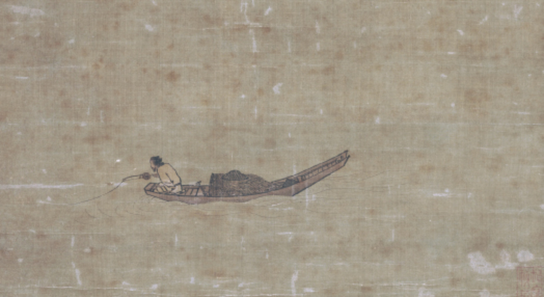 Um pormenor singular numa surpreendente pintura figurativa em que apenas se mostra um homem Solitário pescando num rio frio (rolo vertical, tinta sobre seda, 141 x 36 cm, no Museu Nacional de Tóquio). E, de tal modo austera e desprovida de referências espaciais que, na sua abstração ela se percebe como um ponto-chave, não só daquilo que é a representação artística mas também como uma subtil inquirição à substância do tempo.