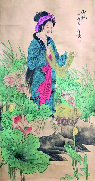 Era tão atraente que os peixes do lago, onde ela ia todos os dias lavar as suas sedas, perdiam a capacidade de nadar e afundavam-se. Xi Shi cruzou-se com o engenhoso Fan Li junto ao lago, quando ele andava à procura de uma mulher inteligente e talentosa. Apaixonaram-se perdidamente um pelo outro.