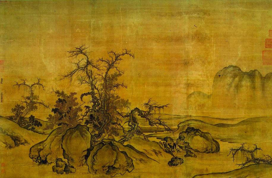 É certo que um texto atribuído a Wang Wei (701-761), dos Tang, o Hua Shanshui Fu, falava já de como “ao retratar a paisagem, o pintor deve deixar a emoção conduzir o seu pincel”. O mesmo Wang Wei que já tinha dito: “Eu compreendo a pintura por uma disposição natural, como o grou gemente encontra o seu caminho na noite… o meu amor por paisagens me guia”. Ao contrário no entanto, de todos os artistas dos Tang, de Guo Xi não se sabe que pintasse outro tema que não fossem paisagens. Por isso ele sistematiza a sua elaboração. A sua teoria das três proporções da composição – sanyuan: distância em altura (gaoyuan), em profundidade (shenyuan) e nivelada ao nível do olho (pingyuan), tornar-se-ia essencial na tradição chinesa. Ao iniciar a sua pintura o pintor devia começar por estabelecer hierarquias, a única coisa estável num microcosmo em permanente mutação. Assim uma alta montanha será como um rei rodeado pela sua corte de outras montanhas mais pequenas, o grande pinheiro será um nobre rodeado dos seus criados. A parte mais baixa da composição será a mais próxima do observador e deverá por isso conter alguns detalhes, pelos lados pode haver bolsas de nevoeiro e lugares distantes possibilitam que o olho viaje. Também lhe é atribuída a frase que outros referem como sendo de Wang Wei e que refere a economia da representação pictórica na compreensão do desenho da perspectiva e da figura humana no contexto da paisagem: ao longe os homens não têm olhos/ as árvores não têm ramos, as montanhas/ carecem de pedras e a água não tem ondas. Outras convenções como o simbolismo das cores são referidas de forma definitiva no Linquan Gaozhi. A sistematização do pintor reflectia a social. O imperador Huizong (1100-1125), que por outro lado era um escrupuloso realista e portanto desprezava a nova perspectiva de Guo Xi, havia criado academias específicas para as belas artes. Enquanto nos Tang todas estavam reunidas num Colégio de Ciências e Letras, a Academia Hanlin, Huizong instituiu para a pintura a Hua Yuan, para a caligrafia a Shu Yuan e até uma academia específica para a música.